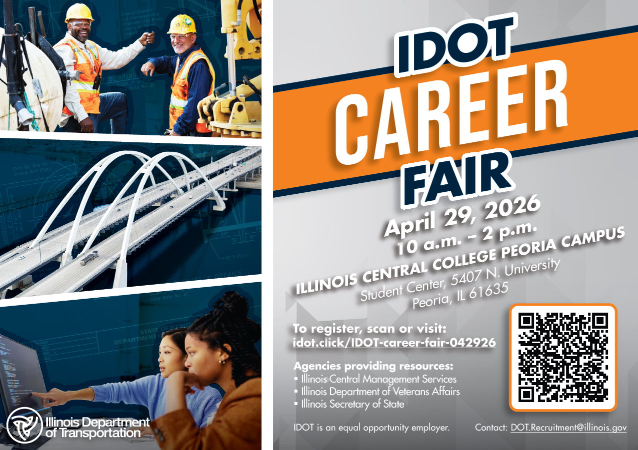 PEORIA – The Illinois Department of Transportation is hosting a career fair in Peoria on April 29. The fair will be held: 10 a.m. to 2 p.m., Wednesday, April 29 Illinois…