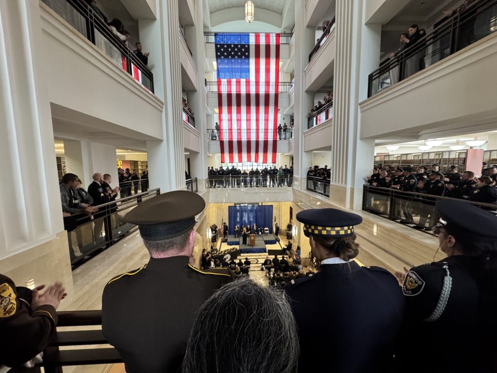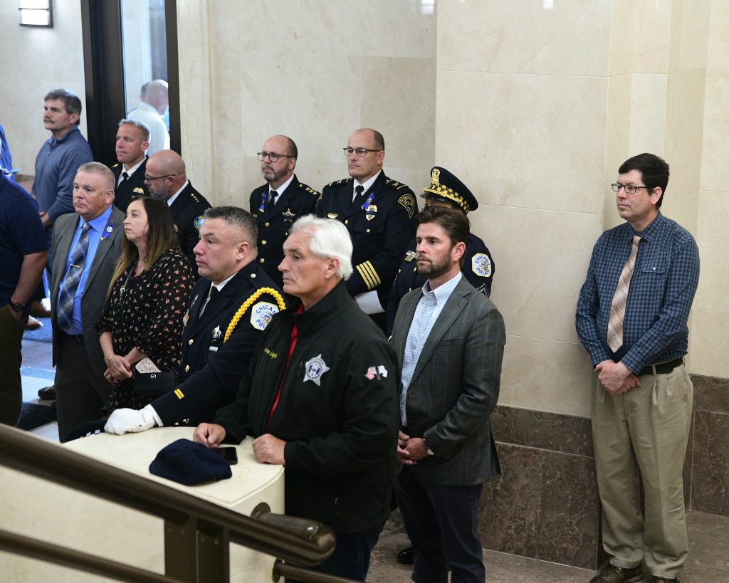 Rep. Spain joins officials and law enforcement from across the state to pay tribute to the Illinois police officers who gave their lives in the line of duty over the last year during the Illinois Peace Officers Memorial Ceremony.