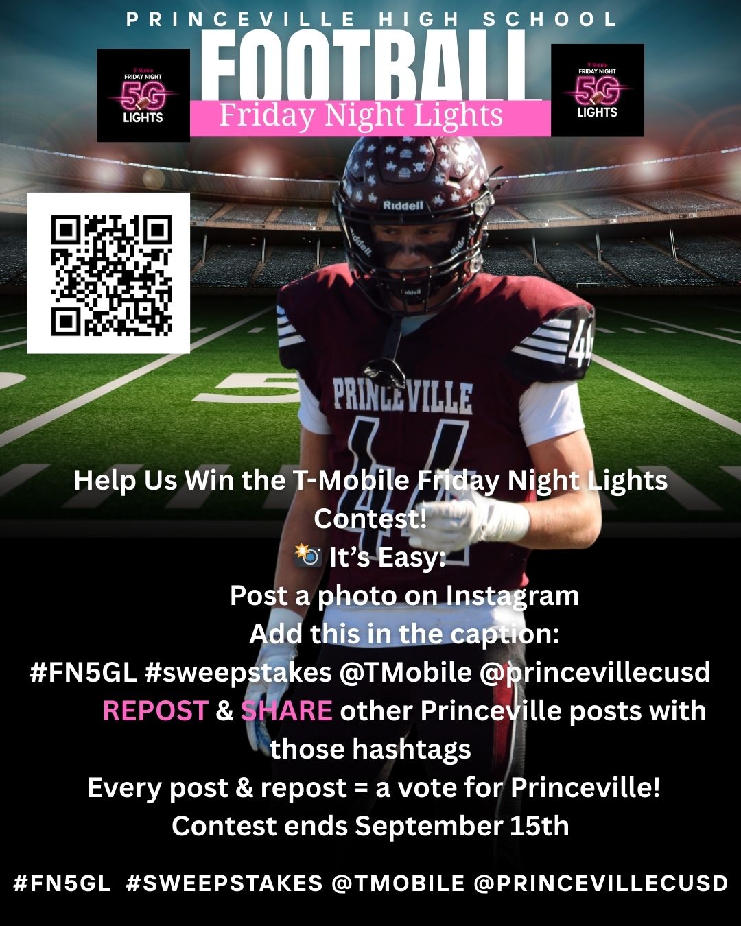 To support Princeville, visit their Instagram – Click Here. Repost or Share on Instagram and don’t forget the hashtags #FN5GL #Sweepstakes and to tag @TMobile and @PrincevilleCUSD.